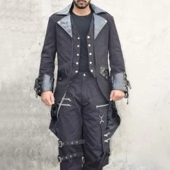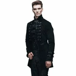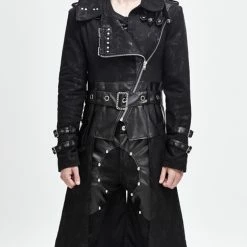 RebelsMarket Coats Streetwear Men’s Woven Stand Collar Double Breasted Pocket Slim Fit Trench Coat