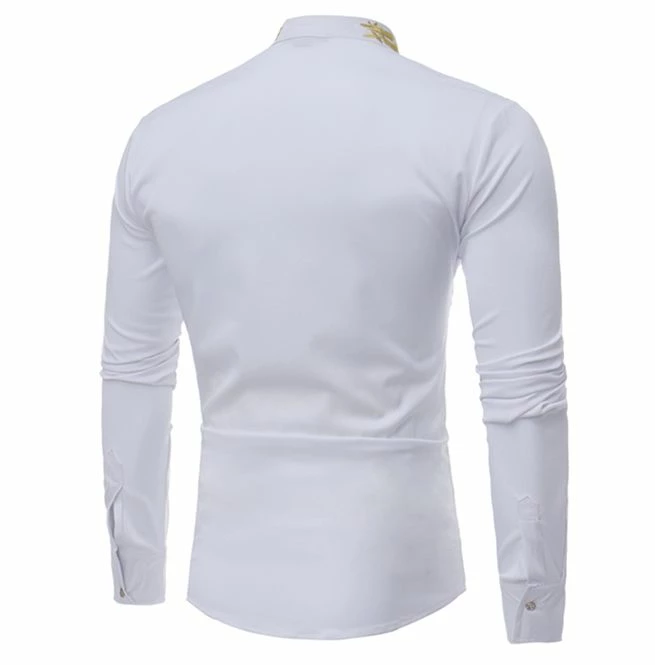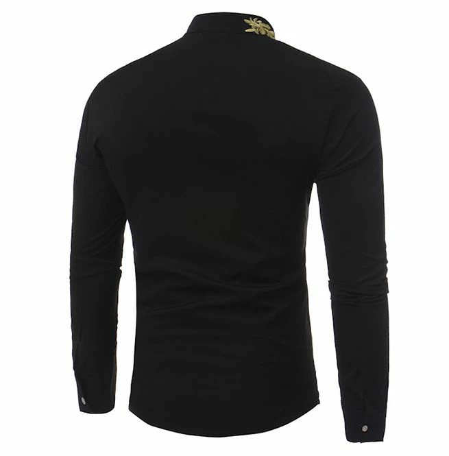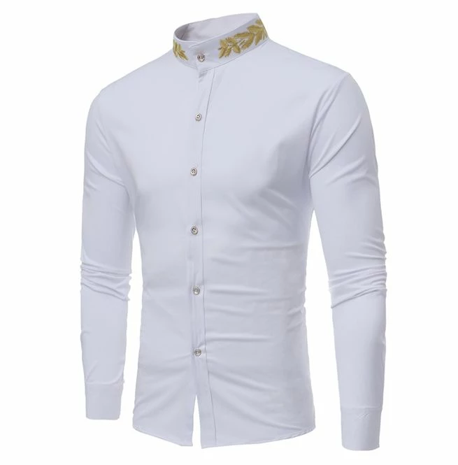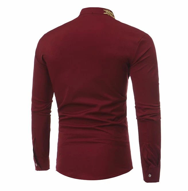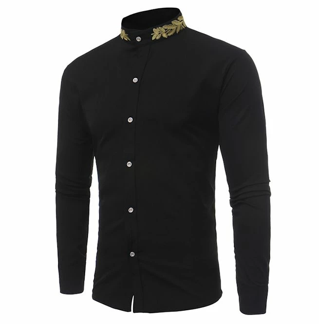 This slim fit shirt will be a fantastic addition to every man’s wardrobe. Featuring a stand collar and eye-catching gold embroidery. Comfortable and stylish long sleeve shirt perfect for casual and formal occasions.